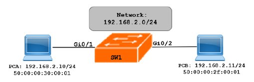 Veamos el siguiente ejemplo, tenemos los datos de capa 3 y capa 2 de cada host.